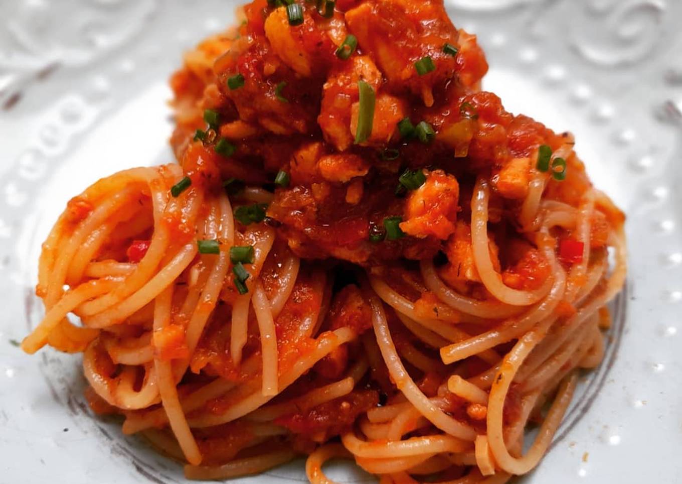 Espaguetis a la boloñesa de salmón