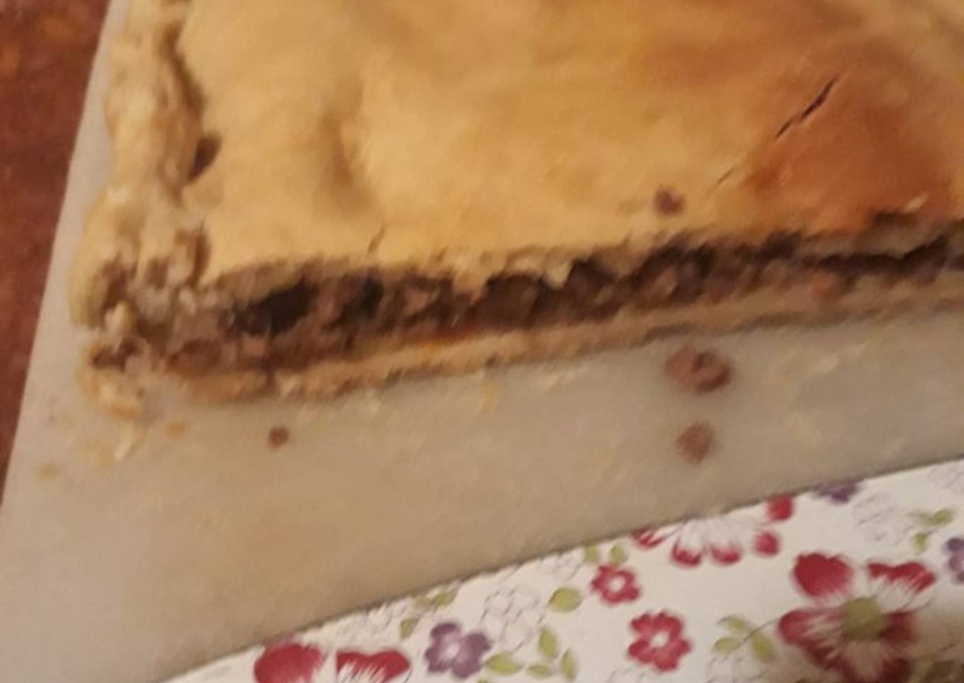- Hacer la masa.. colocar en un bowl la harina sal alrededor aceite en el medio y la agua tibia c/n.. formar un bollo.. estirarla bien en una asadera pinchar la masa y colocar el relleno de carne